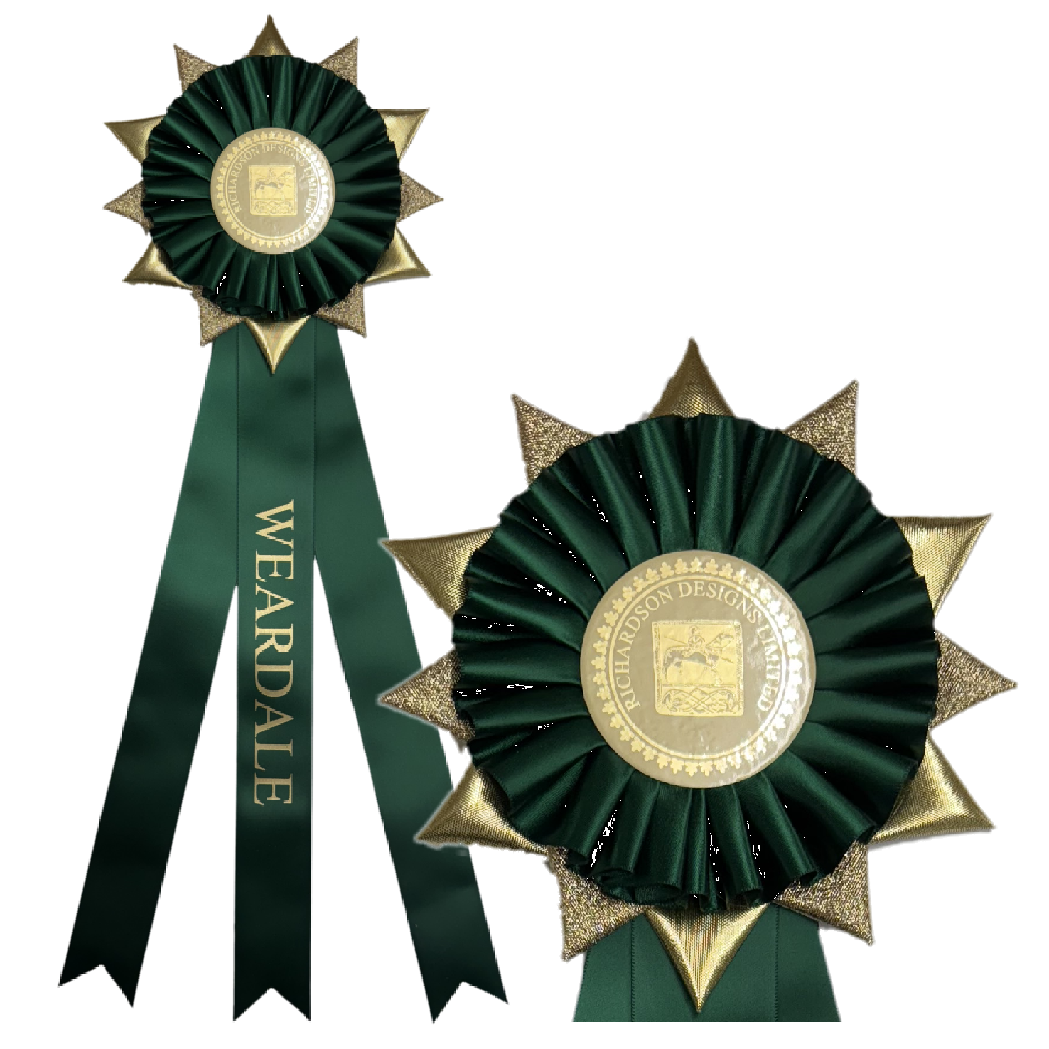 Choose from 52 colours or enhance your rosette with maybe metallic, spots, tartan, tramline or specialist ribbon. All rosettes can have printed tails at a small extra cost.